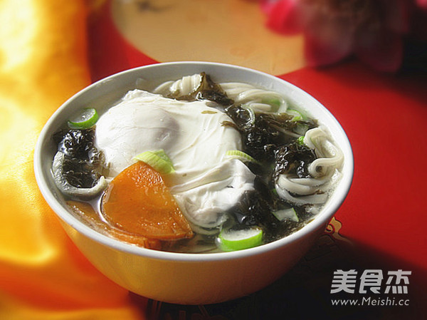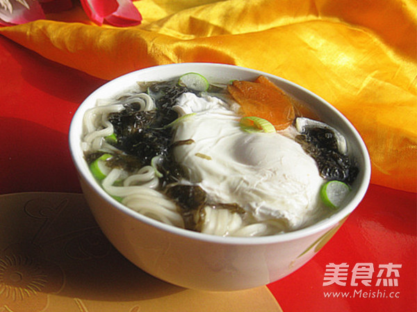 紫菜能抗辐射、抗突变、抗氧化,与其含硒有关。硒是一种重要的微量元素,能增强机体免疫功能,保护人体健康。常吃含硒丰富的紫菜,可提高人体对抗辐射的能力。现在的雾霾天气很严重,就是过年也不要忘记吃一些对身体健康,防雾霾天气是饮食,紫菜鸡蛋面对预防雾霾天气的辐射等能起到一定的成效。 主料 挂面130克 紫菜8克 鸡蛋2个 辅料 香油8克 胡萝卜少许 精盐3克 葱4克 紫菜荷包蛋汤面的做法 1.食材:鸡蛋、机制挂面。紫菜。 2.紫菜水里洗一下。 3.锅里放入水 烧开,放入紫菜、胡萝卜。 4.放入挂面、盐,挂面煮至五分熟的时候。 5.打入鸡蛋,继续煮至挂面熟,放入葱花,淋入香油即可。 6.美味面条装碗即可食用。 烹饪技巧 挂面煮到里面没有白芯就是熟了。