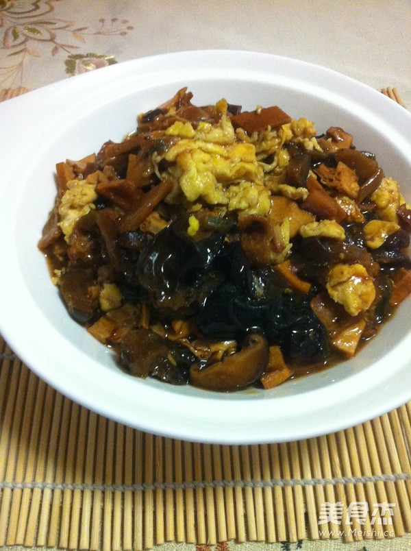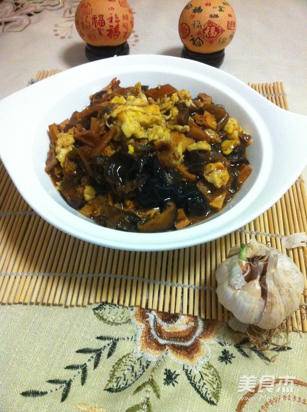 蘑菇5克 黄花菜5克 茄子干5克 干豆角5克 平茹5克 腐竹20克 香菇5克 面筋80克 香干150克 木耳(水发)30克