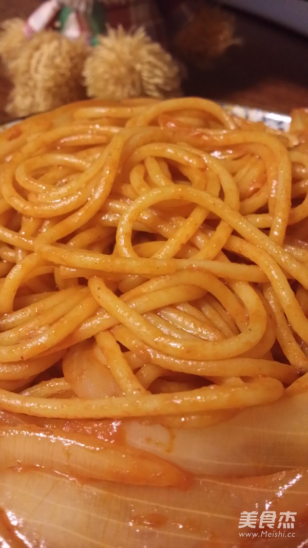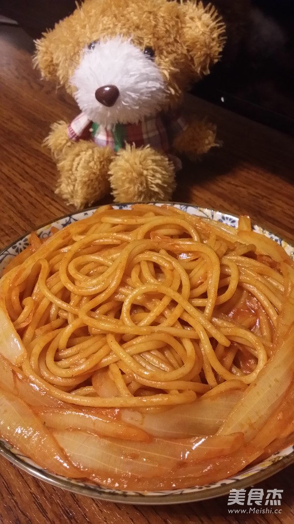 从意大利穿越到韩国?吼吼,不要说的这么拽,其实就是乱调嘛~两种平时完全不沾边的东西,混搭到一起,竟然也出现了惊艳的口感~话说某天想吃炒年糕~懒癌发作,不想去超市买年糕~翻腾翻腾找出了半包意大利面,好吧,就这个了,配菜本来想放一点胡萝卜神马的,懒得去洗去切了,好吧,只好告诉自己,洋葱才是真爱~