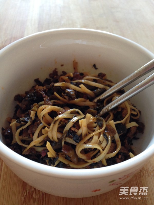 1、雪菜本身有盐分,外加酱油也是咸的,所以炒肉丝就没有放盐 2、炒雪菜肉丝稍微留点汤汁,便于面条搅拌均匀