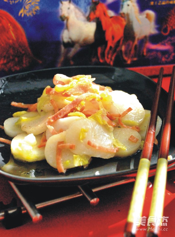 过年倒计时——过年怎能少的了年糕呢,年糕谐音年高,迎合人们好口彩的心理,所以都流行过年吃年糕,吃了年糕生活年年高。以前是到了冬季,就有年糕吃了,为了防止发霉,就浸在水中,早晚换水。现在容易多了,在家用面包机就能做成自己喜欢的糖年糕,玫瑰花年糕和家常年糕了,方便又实惠。今天上传的这道白菜炒年糕就是用自己做的年糕。不是传统的肉丝猪油炒法。而是用培根和橄榄油改变了一下,新派炒年糕也是我所欣赏的一种做法,同时也很受家人喜欢哦。