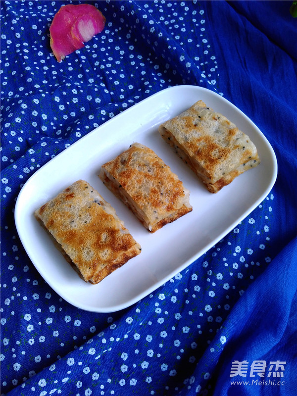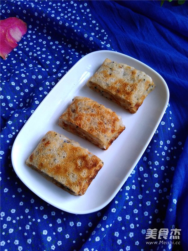 8.当电饼铛提示音响起时,火龙果煎饼就煎好了。