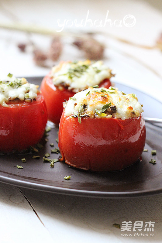 1、西红柿不要太大,太大不易烤透; 2、炒好的香菇碎会略有剩余。