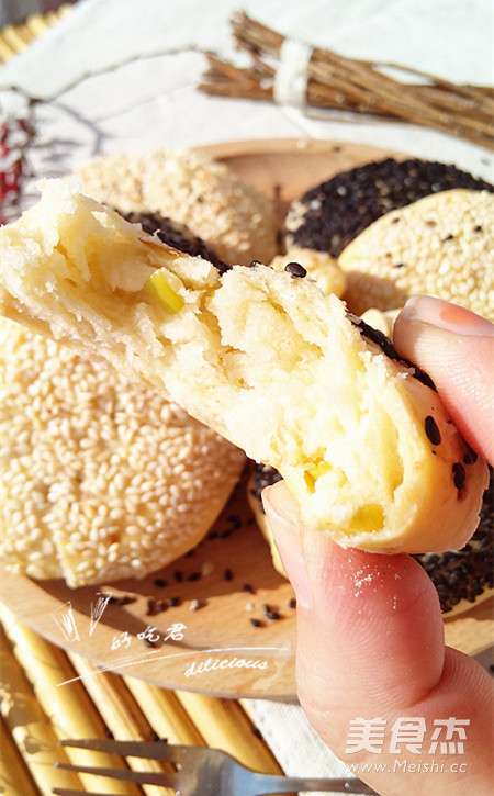 其实原本想做麻酱烧饼,因为这个很经典,而且家里面还有剩下的芝麻酱。但是我妈强烈的反对,她受不了芝麻酱做成饼子的那种味道,无奈之下,我就把里面的麻酱换成葱花,烤的时候充满葱香味儿,也是不错~