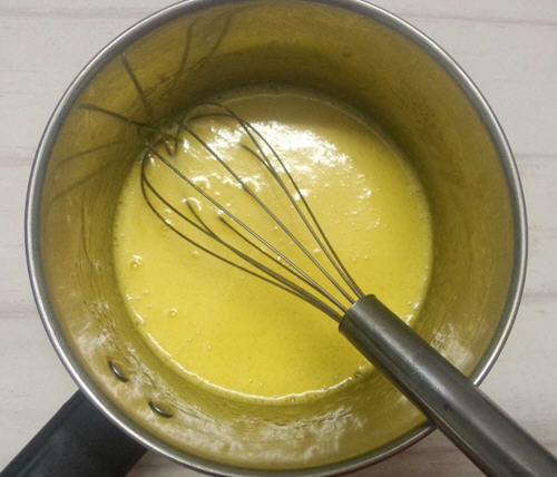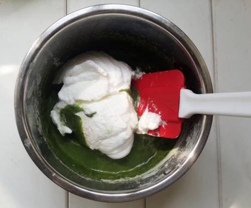 6、取三分一蛋白霜和蛋黄糊切拌均匀。