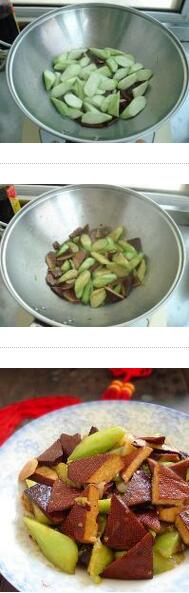 香干炒丝瓜的材料:丝瓜2根,香干200g,油,盐,葱,蒜,老抽 美食网 香干炒丝瓜的做法: 1. 丝瓜去皮切块,香干切片。 的做法 2. 坐锅倒油,放入香干。 香干炸至表皮略干后放入葱,蒜炒香,放入丝瓜,放入少许盐,老抽翻炒至丝瓜成熟即可