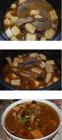 田螺鸭脚煲的材料::鸭脚,田螺,淮山,油豆腐,蚝油,大葱段,姜,蒜,料酒,香料包,辣腐乳,白砂糖,笋,豆鼓,紫苏,