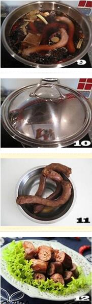 4.煮好的鸭脖子在锅中浸泡3—4小时。(时间久更入味)取出后自然风干冷却后切小段就可以了