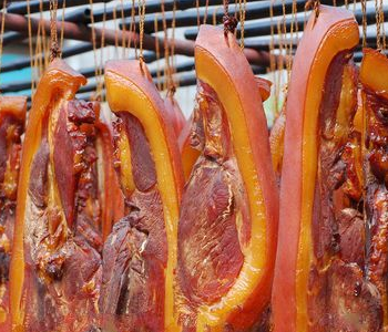 3、质量好的腊肉,皮色金黄有光泽,瘦肉红润,肥肉淡黄,有腊制品的特殊香味。
