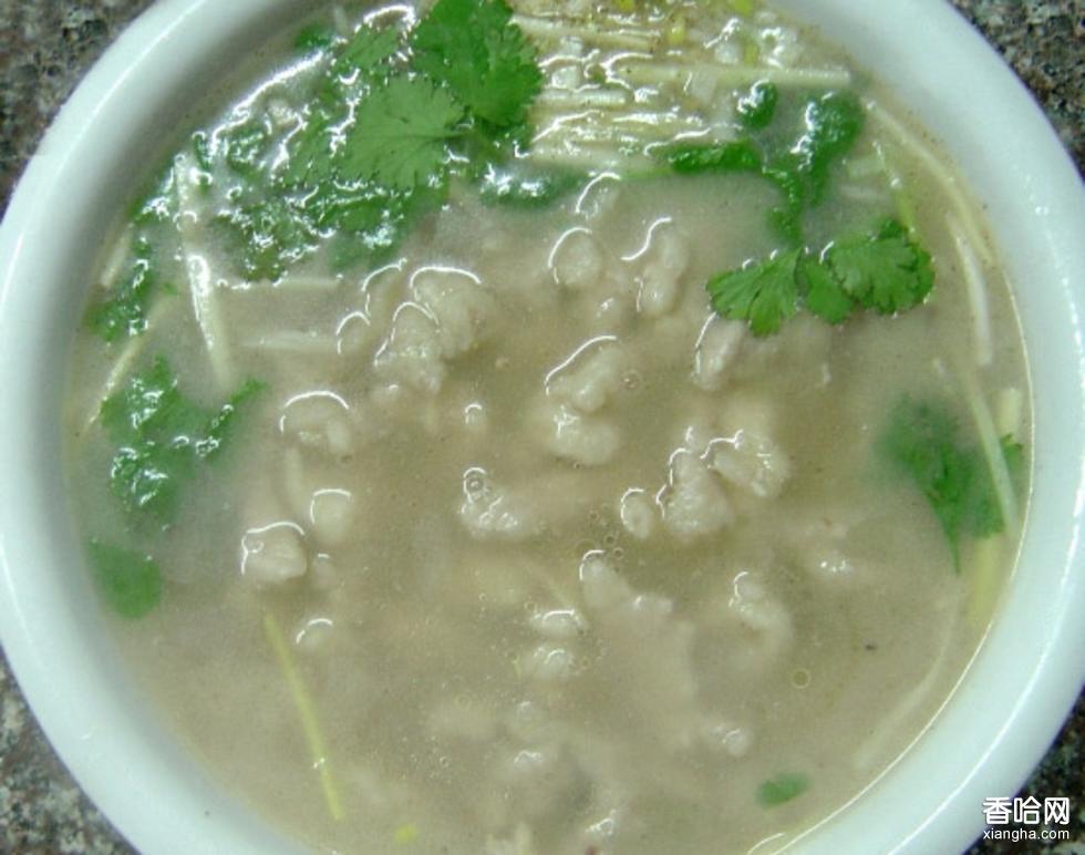 羊肉滑脊是江苏徐州著名的特色菜,属于苏菜系。奶白色的羊肉汤漂浮着水晶般的滑脊,用嘴轻轻吹一下汤面上翡翠般的香菜,和红艳艳的辣椒油,小吖一口滚烫的羊骨汤,鲜香扑鼻,香溢满口,用汤勺捞起一块滑脊,放入嘴中,又滑又嫩,美不胜收。