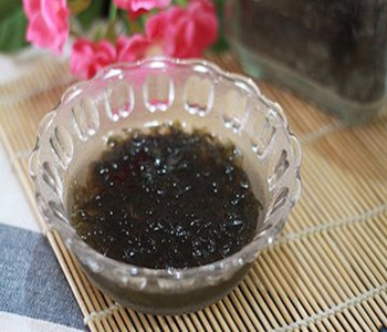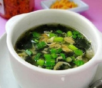 制法:将干紫菜泡发,用清水洗去泥沙。锅内加适量水烧沸,放入紫菜烧一会,有关紫菜汤图片(19张)加入精盐、味精、葱花调好,淋入麻油,出锅即成。