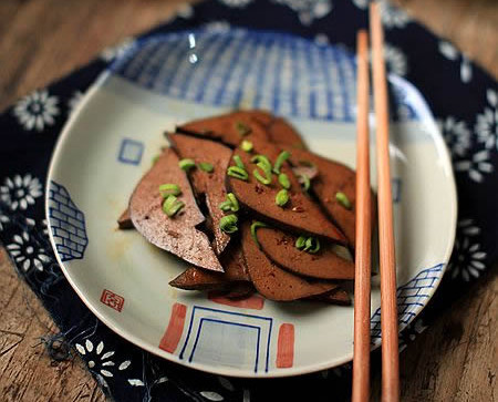 酱卤猪肝好吃家常做法,就是整块猪肝泡在卤汁里浸泡入味。酱卤猪肝加的浓油赤酱,酱香之中透出的是甜甜的。酱卤猪肝味道和比起传统卤制法,更快手一些,色泽也更好看。能切薄,口感一定会更好的。
