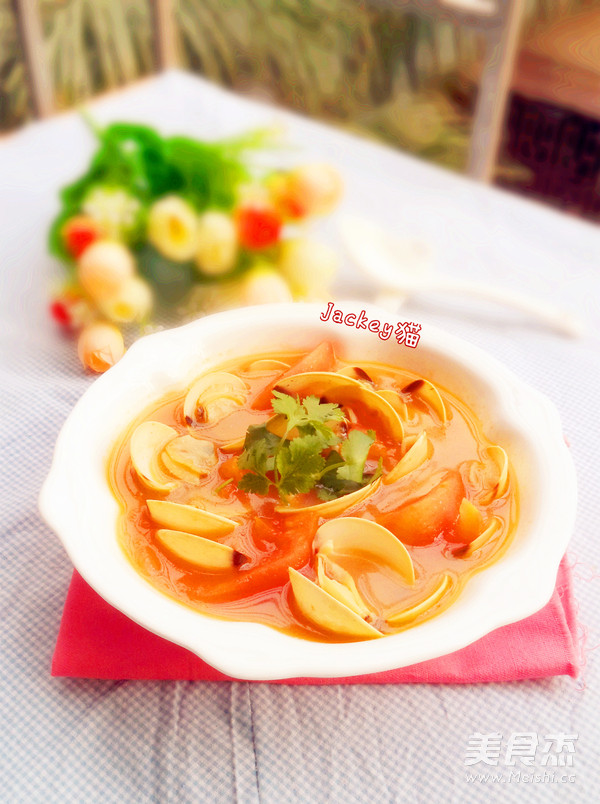 自打前不久在老妈家做了一款这样的番茄白贝汤给LG喝过后,人家现在是几次三番的要求再做这款汤水来喝,其实猫也很爱喝的,就是要上班,总也没机会买到好的白贝,今天到市场的时候,说什么也要买上一些回来给LG解解馋了,挑了两斤,老板还少收了2块钱,占了个小便宜哈,正好用这两块钱买了些香菜放在汤里喝,看着这汤水就有食欲,汤色鲜亮,入口鲜美,对猫这正在减肥的人来说,可是个非常不错的好汤水,有营养,还不会长肉肉
