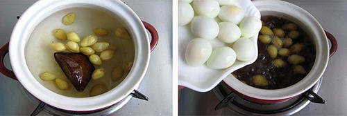 6、大火煮沸,红糖全部溶化时,加入鹌鹑蛋。