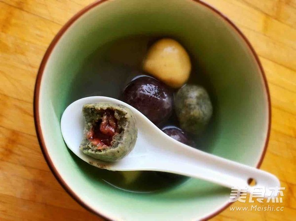 米粉和各种杂粮粉吸水性不一样,要少量多次加水,直到和成光滑的面团,第一次用杂粮做汤圆,装的馅料不多,感觉还是黑米面和米粉混合的最好吃。