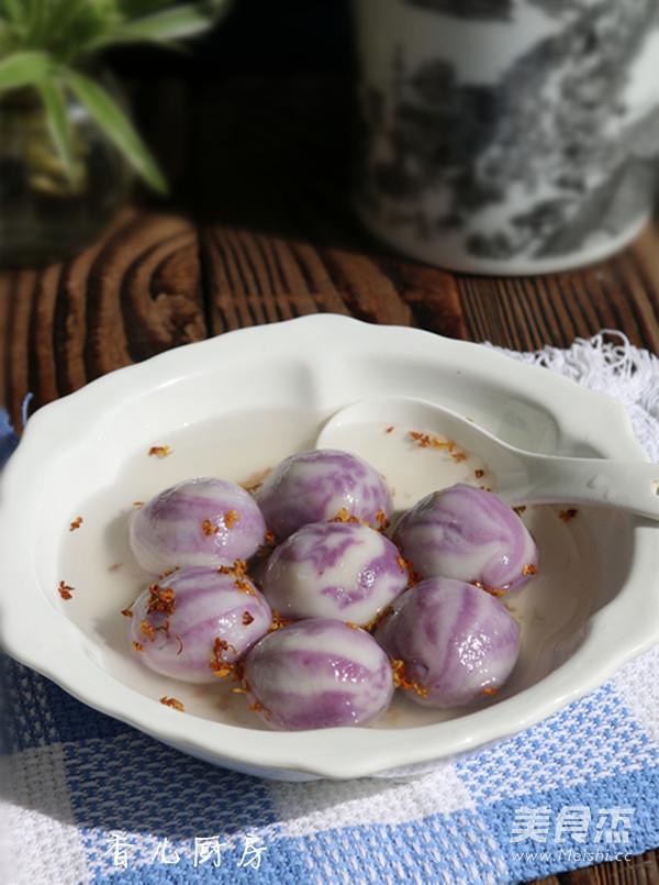 汤圆在我们这里叫圆团,寓言团团圆圆,自家做汤圆可以依照自家的喜好调换,我们喜好泥馅料,满口的香甜,外皮用紫薯米粉搭配,最后用糖桂花入汤,味道真的一级棒。