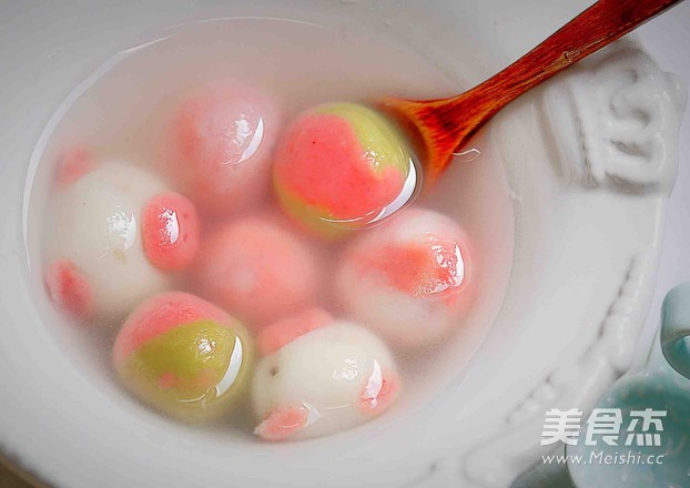 12.红色和绿色面团混合一起做了几个雨花石汤圆