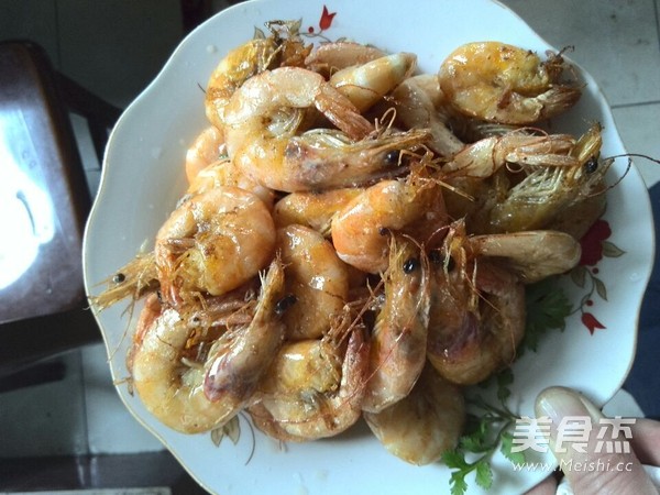 用面粉裹住大虾,用油炸着吃,非常不错。