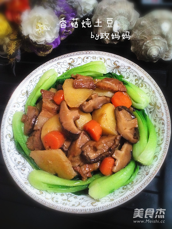 香菇6个 土豆2个 胡萝卜0.5个 猪肉150克 油菜150克