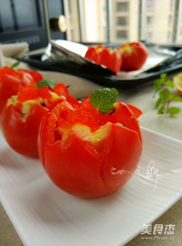 14.把13里的馅塞进番茄里,要塞得满一点