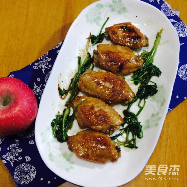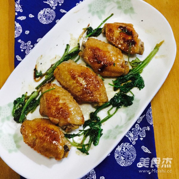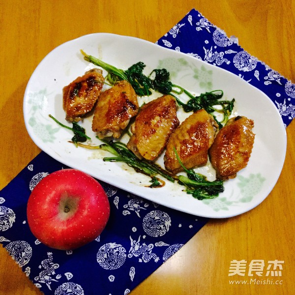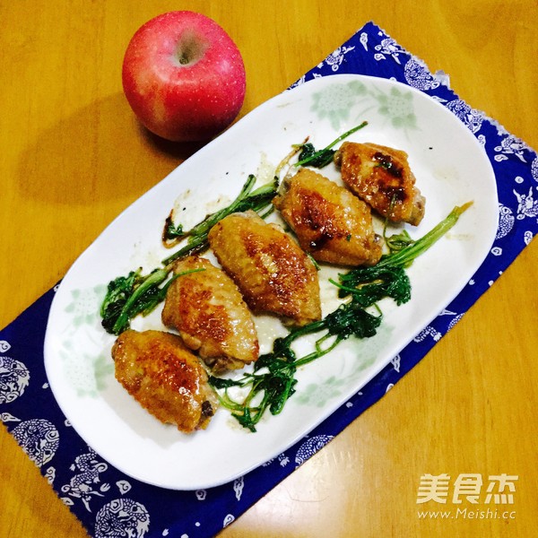 5.翻过来把鸡中翼煎至金黄,加入少许水,盖上锅盖,慢火焗3分钟