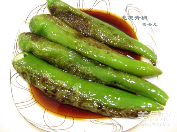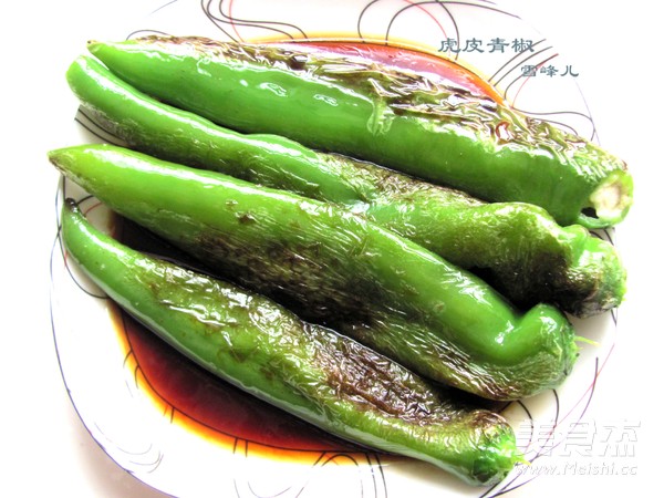 虎皮青椒,简单还下饭,老公特别喜欢这种简单辣味的菜菜,这种做法选择青辣椒比较关键,不要选择呢种很辣的,要微甜微辣,做出来才好吃。。 主料 青椒4个 辅料 盐适量 生抽1勺 醋半勺 虎皮青椒的做法 1.青椒西江擦干水分备用 2.锅里放油烧热 3.放入青椒,改中小火 4.这个过程要盖上盖子,不然会崩油,一边煎一边晃动炒锅 5.碗里 加生抽,醋,盐搅拌均匀做成调味汁 6.等煎到青椒成虎皮色即可出锅了 7.放到盘中,倒入调料汁 8.好吃,香辣。。。 烹饪技巧 煎的时候一定要加盖子,不然会崩油,危险。