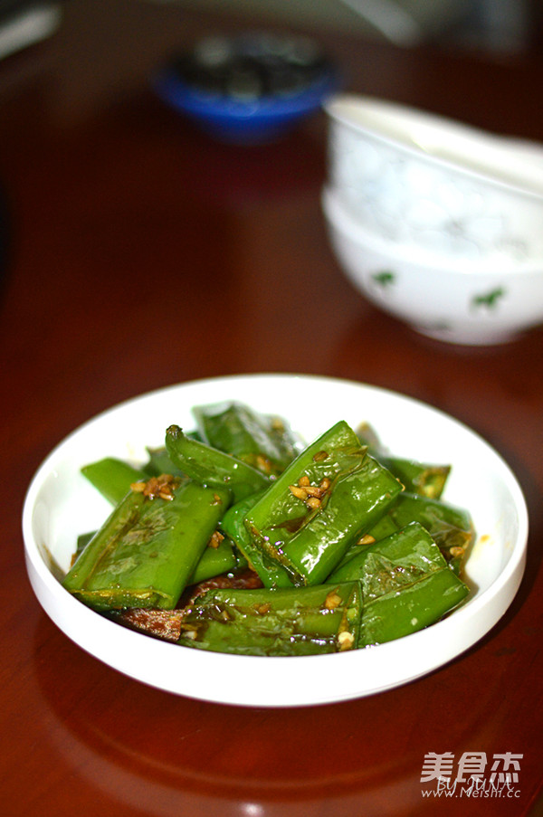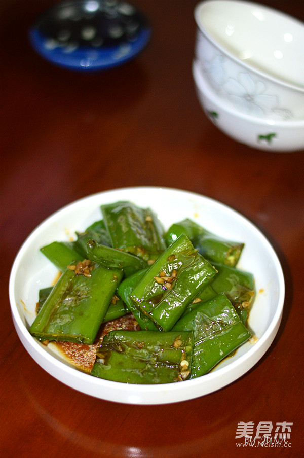 2.尖椒去蒂切段,蒜瓣剁成蒜蓉