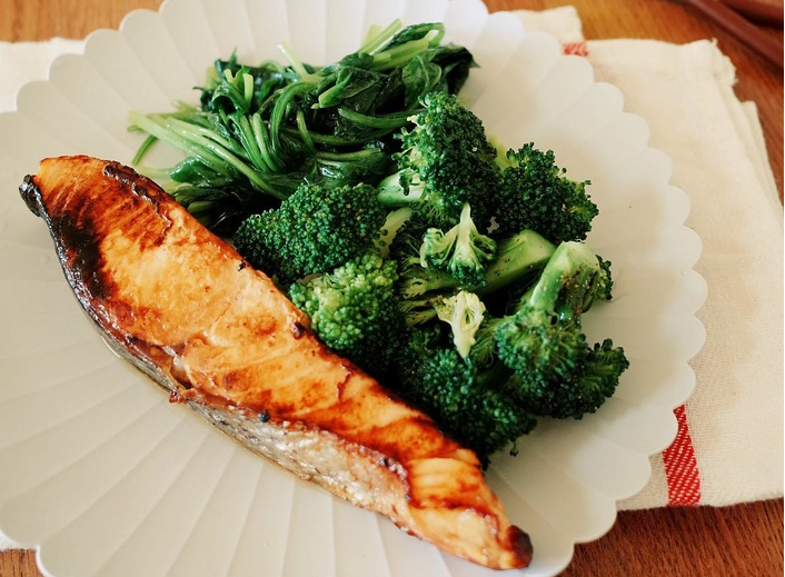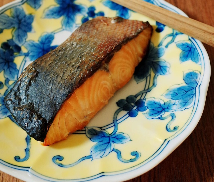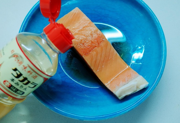 一滴油都不用放,完全利用三文鱼本身的油脂就可以了。因为味醂里面有糖分,烤出来的三文鱼皮脆肉嫩,尤其肉质比较薄的部分,鱼皮被烤得焦焦的,超级好吃,是我们家最常用的做法之一。