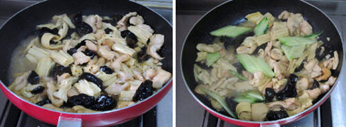 7、加入盐,和一点水,中火烧至汤汁收干。