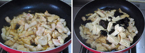 2、加入点水,烧至可以使腐竹更加入味。