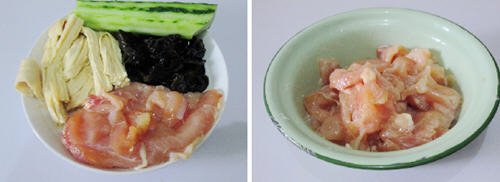 1、准备好所用食材。(腐竹和木耳都是泡发过的,如果是干货要提前泡发。)