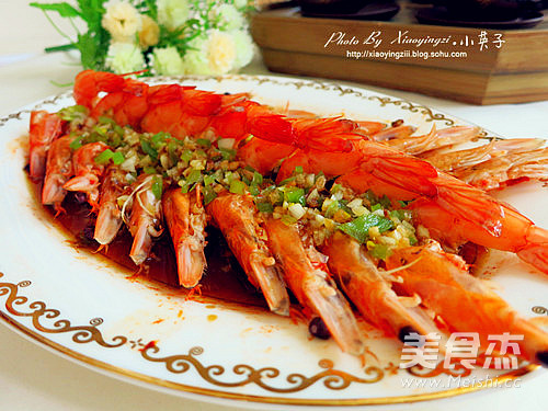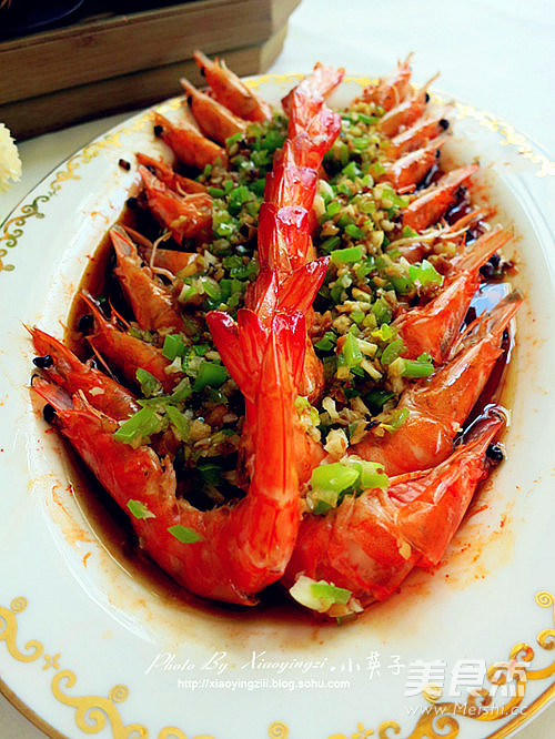 小英子心语: 1.最后可以淋入烧热的食用油,我个人觉得大虾本身够鲜够美味,就减少了此步 2..制作过程中没有放盐,是因为蒸鱼豆豉的咸度淋上正好 3.正巧没有买上红辣椒,如果是用上红辣椒会更好看些