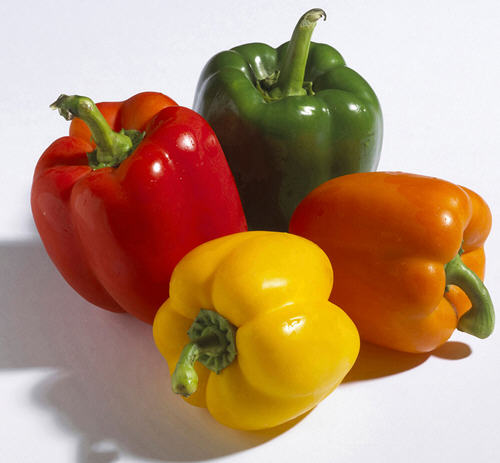 柿子椒中含有丰富的维生素、纤维质、钙、磷、铁等营养素,也是蔬菜中维生素A和维生素C含量最高的,因此是补充维生素的佳蔬。