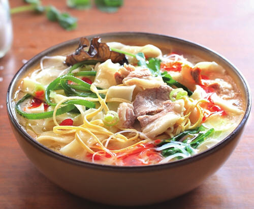 烩面是河南特色美食,有着悠久的历史。它是一种荤、素、汤、菜、饭聚而有之的传统风味小吃,以味道鲜美,经济实惠,享誉中原,遍及全国。烩面按配料不同可分为:羊肉烩面,牛肉烩面,三鲜烩面,五鲜烩面等等。洛阳的水席、开封的包子、郑州的烩面,是河南齐名的三大小吃。烩面是以河南烩面