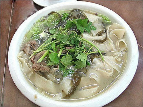 羊肉烩面以清汤(又叫白汤)为主,近几年又出现了卤汤,新乡“小北街”的羊肉卤,像广州炖牛腩一样。羊肉烩面的羊肉汤里有羊肉、羊骨若干(在烩面大王店里,每天都要用几十斤的羊骨头、羊肉来煲汤。),辅以粉丝海带丝、枸杞香菜等。烩面厚度如百合瓣,外滑内韧,咀嚼有张力,分为一段段地吃。吃去尺长,再喝汤。羊肉烩面便佐羊肉汤,海鲜烩面便佐海鲜汤,以此类推。参考价:5元/小碗、6元/中碗、7元/大碗。