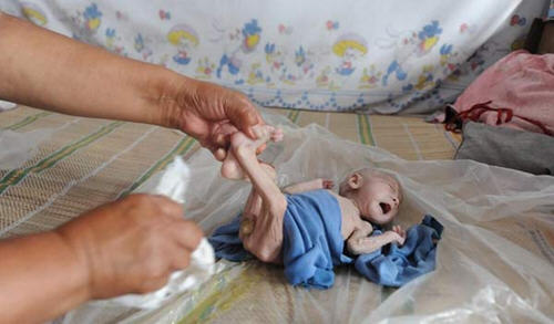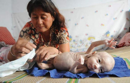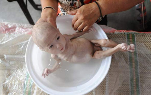 最近山西长治市壶关县桥上乡川底村,一个出生了80天只有4.8斤重的婴儿引起了社会的观注,不光是因为他只有4.8斤,主要是因为他长像很似外星人,而且天生无肚,是什么原因导致他成这样呢?除了基因突变,恐怕与父亲和饮食上还有很大关系。