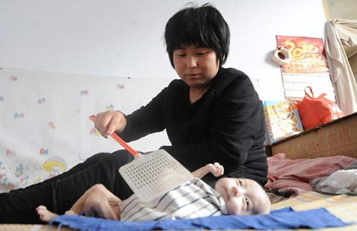 简陋的房屋里,靠墙的床上皮包骨的小恩泽微弱地哭泣着,身旁的妈妈任明娥静坐在床上,从出生那天起,孩子就没喝过一口他*的奶。24岁的任明娥先天弱智,连最简单的10个数字都念不全。