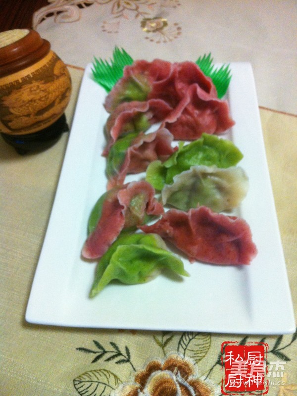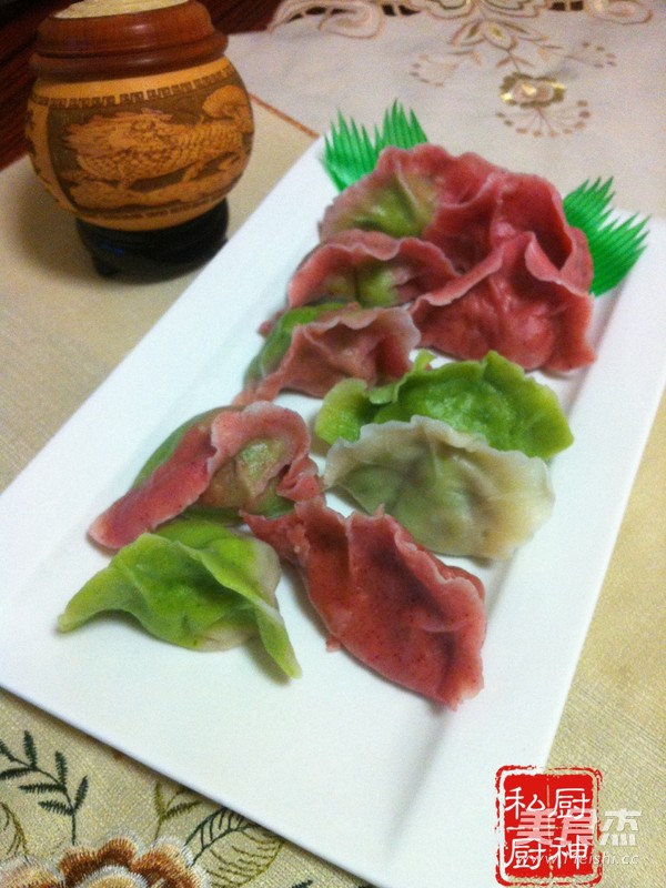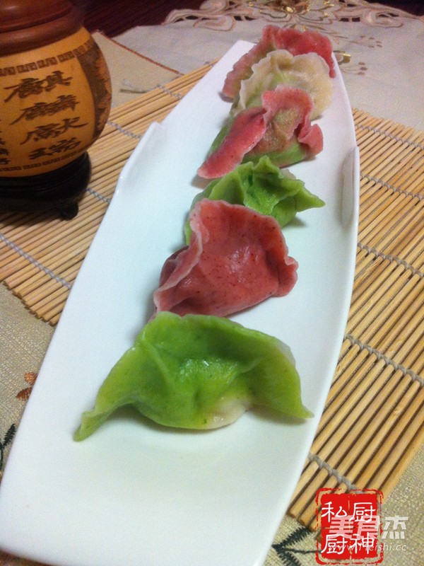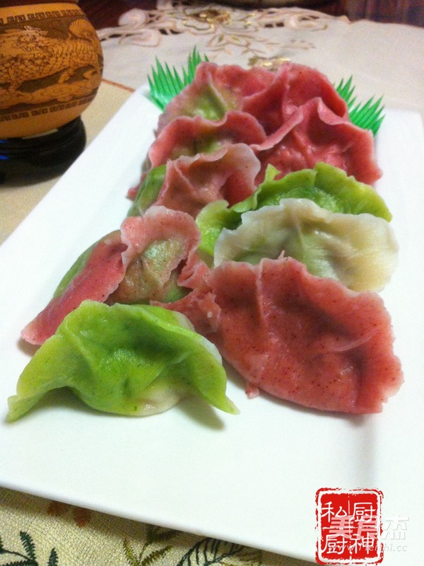 生抽30克  韭菜250克  胡椒粉0.5克  火龙果皮1个  菠菜10克  盐8克  面粉600克  糖3克  老抽6克  香油5克  姜5克  蚝油20克  料酒30克