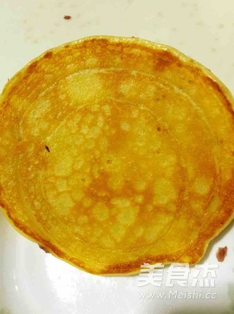 4.当面糊看着凝固,边缘变色后就可以翻面(其中一个可以看出边缘变色的情况),再略煎一下就好了