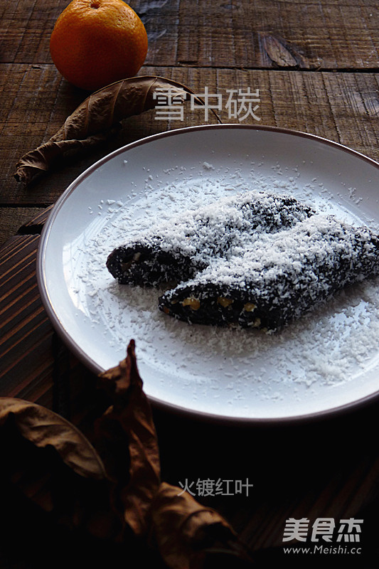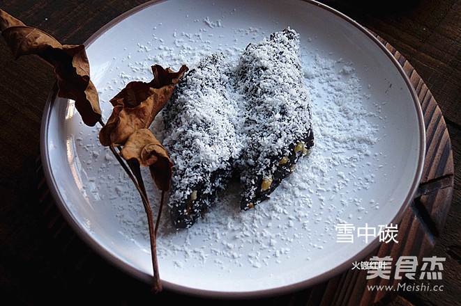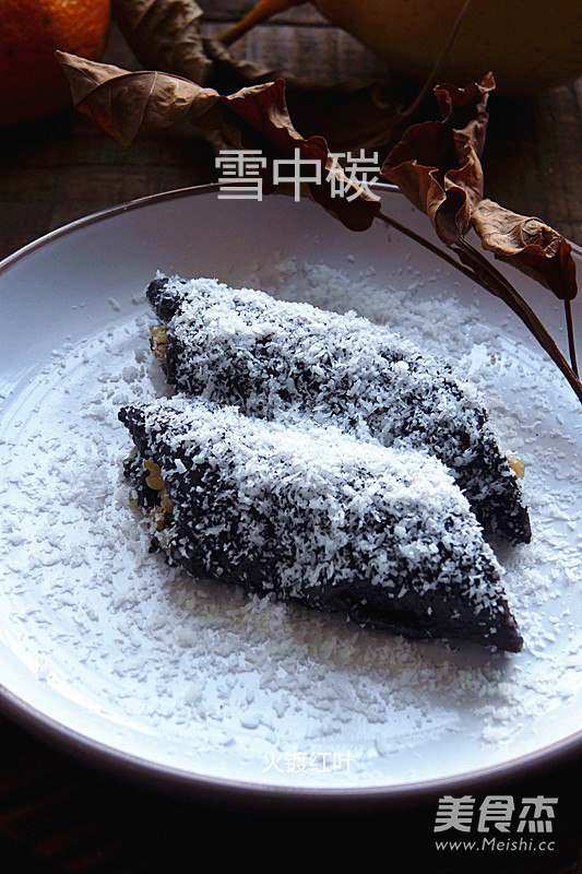 雪中碳只是像形叫法,也可叫核桃杂粮米卷之类吧 主料 黑米3匙 紫米2匙 黑芝麻2匙 马蹄粉50克 核桃仁50克 辅料 沙糖20克 椰蓉10克 雪中碳的做法 1.备材料,黑米、紫米、黑芝麻提前泡发好,核桃仁烤脆并碾碎 2. 黑米、紫米、黑芝麻放破壁机内,加1碗左右的水,打成粉浆 3.在粉浆内加入马蹄粉 4.量的粉浆 5.在一盘内抹上油,倒下适量的粉浆 6.沸水入锅,蒸8分钟即可 7. 取出蒸好的粉皮晾凉,撒下上许的糖与烤脆的核桃仁,卷起 8.切段上碟后,撒下椰蓉,即可食用