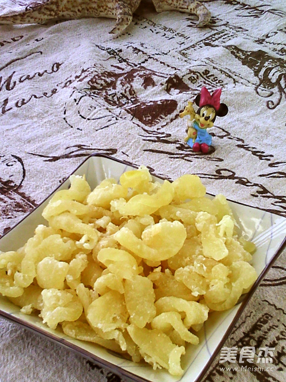 漂洗挤水时需尽量将水分挤干,以免口味苦涩。 最后尽量将表面水分烘干,更便于保存。 用糖量可以根据自己口味酌情调整。
