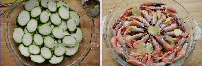 2、将丝瓜片码在盘子底部,将北极虾码放在丝瓜片上,并铺上姜片。 怎么做好吃