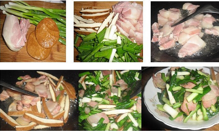 青蒜咸肉炒干子的材料:咸肉青蒜香干,盐