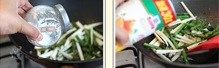 2 等芦笋炒软后放入盐;临盛盘前放入鸡粉。