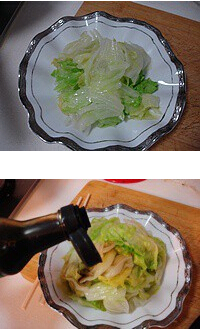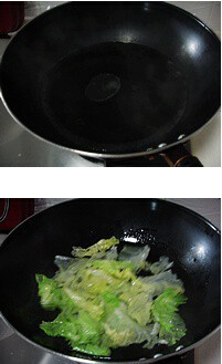 2.放入圆生菜灼一下。 3.捞起放入盘子里。淋上头遍油菜豉油